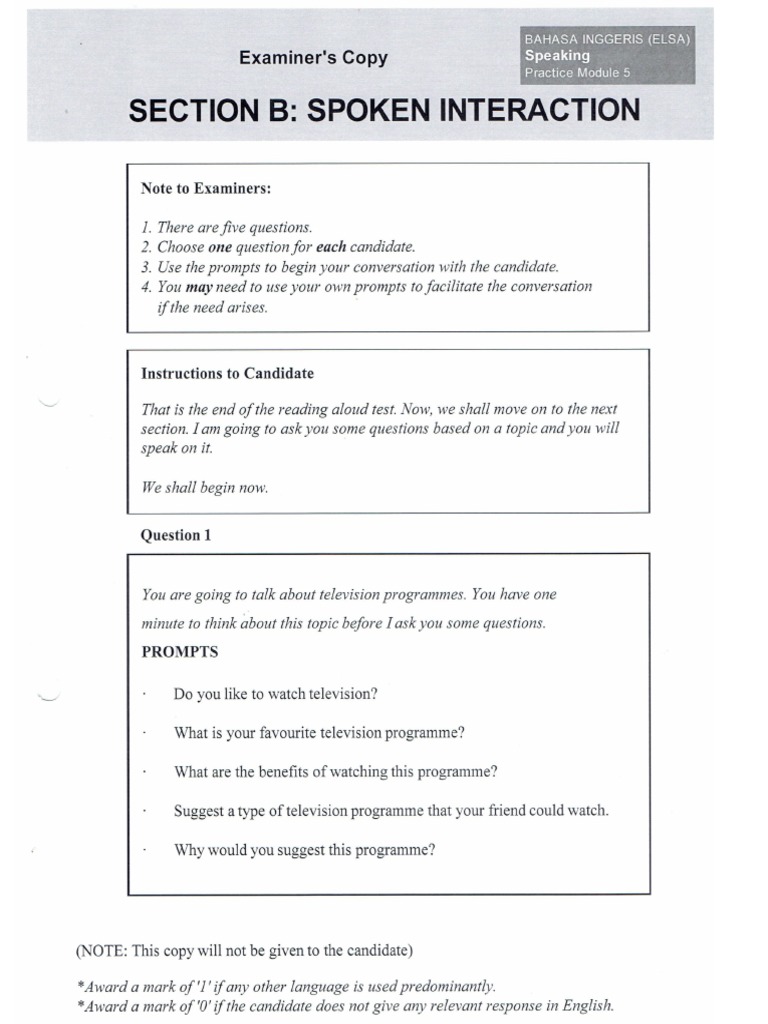 Pt3 Speaking Test Sample / Pt3 English Speaking Test Questions 2019 : In this part the examiner may push the candidate hard to see the boundaries of their.. This is to give you an idea of pt3 speaking test b1 level_1. Pt3 speaking sample test examiner booklet. Pt3 speaking sample test (1) pt3 speaking sample test (2). Live test materials (including mark schemes) must not be reproduced or used for teaching or test practice. Leave a comment posted in lesson plan, listening, reading, speaking, writing.